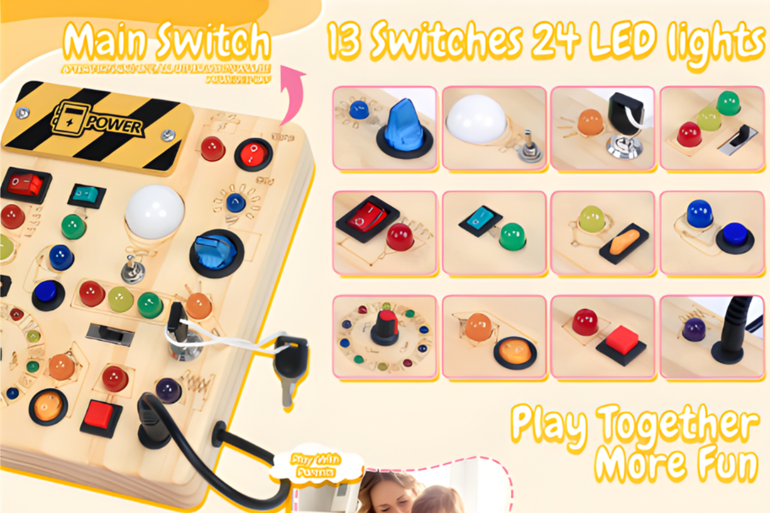 Unlikely. Toddlers don’t play the same way twice—today it’s flipping switches, tomorrow it’s chasing light patterns, next week it’s matching letters and numbers. The board grows with your child’s curiosity, keeping it interesting over time.